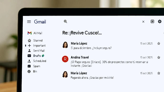 Recupera 30% de prospectos fríos con notificaciones personalizadas que reviven conversaciones – útil en turismo, donde un correo de "oferta Cusco" lleva a reserva instantánea.